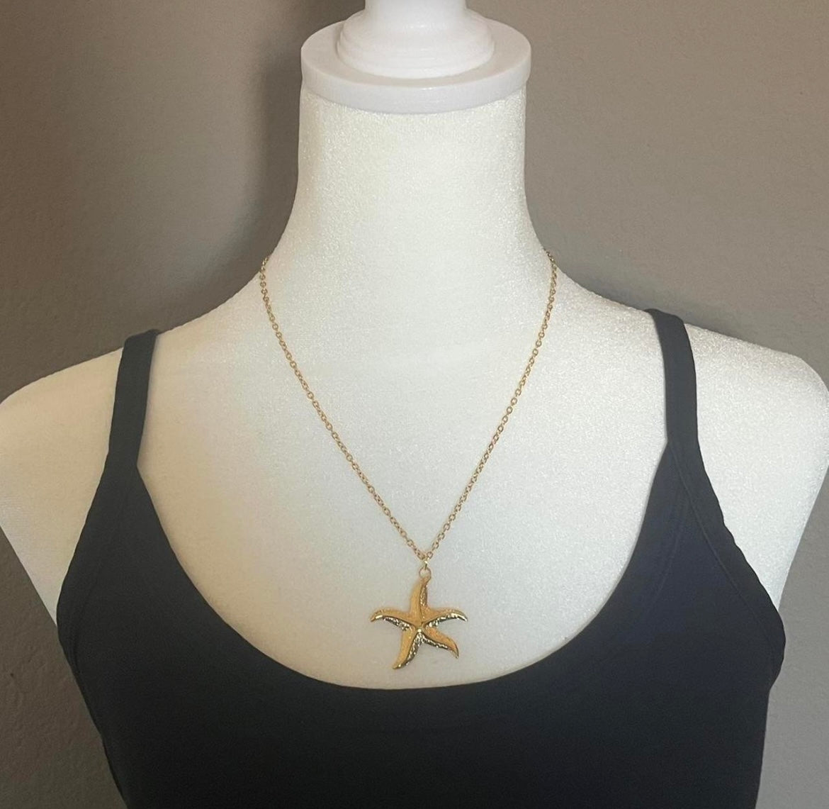 This 18-inch Starfish Pendant Necklace captures the essence of the ocean with its simple, summer-inspired design. Perfect for beach days, vacations, or adding a coastal touch of elegance to any outfit.