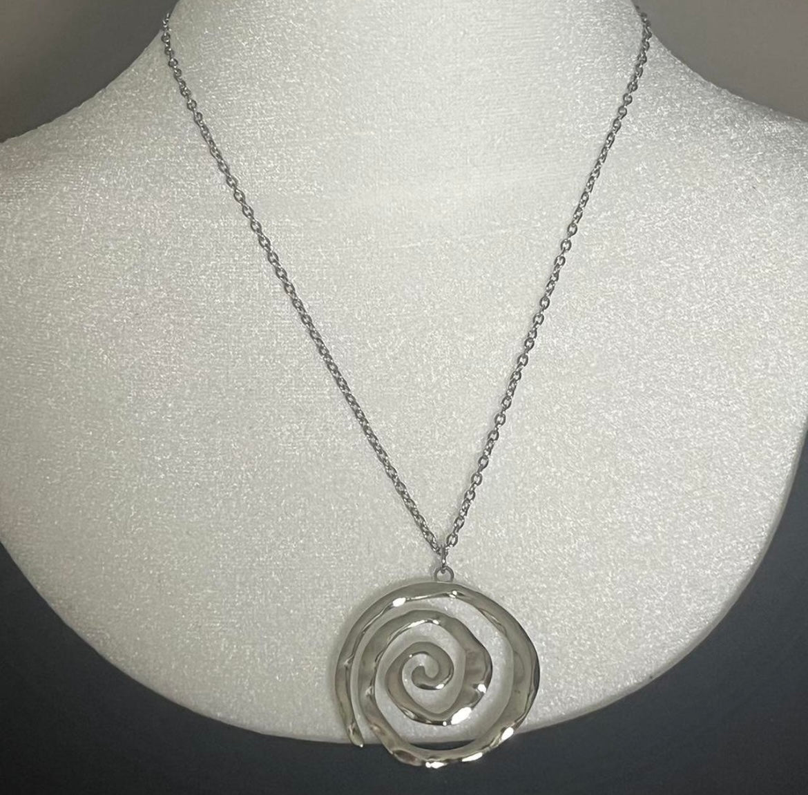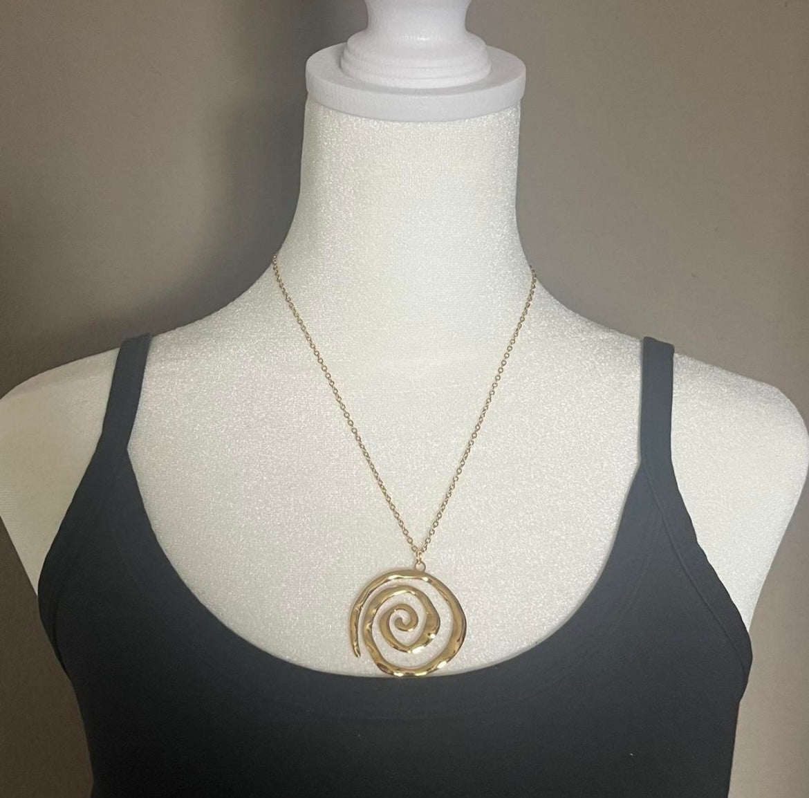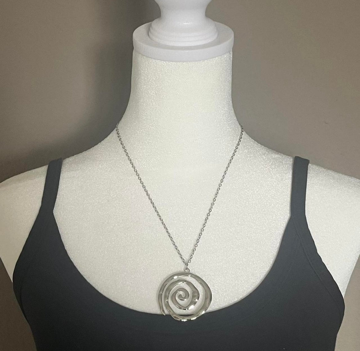 This 18 Inch Swirl Statement Necklace features a simple retro design with a trendy swirl. It adds a touch of personality to any outfit and is perfect to wear for everyday use or special occasions.